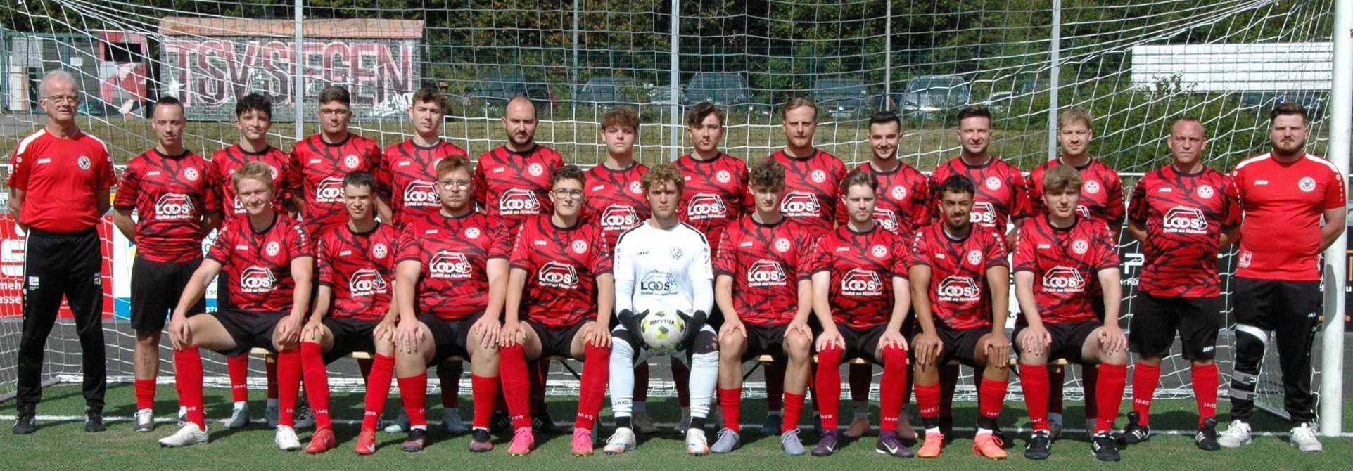 Hintere Reihe (v.l.): Spielertrainer Christian Rödder, Marius Krämer, Steven Nawroth, Naasir Abdisiraq, Daniele Todaro, Majid Boubaous, Linus Doikas, Fabian Bäumer, Fabian Sommer, Co-Trainer Timo Müller. Vordere Reihe (v.l.): Florian Krasniqi, Hannes Oerter, Manuel Zedler, Leon Schreiber, Mats Menn, Eric Bissel, Fynn Noah Dapprich, Luca Bellomo, Robin Möller, Mark Schneider. Kacheln rechts (v.l.): Torwarttrainer Patrick Stock, Henrik Schwann, Jonas Bäumer, Simeon Kraus.
